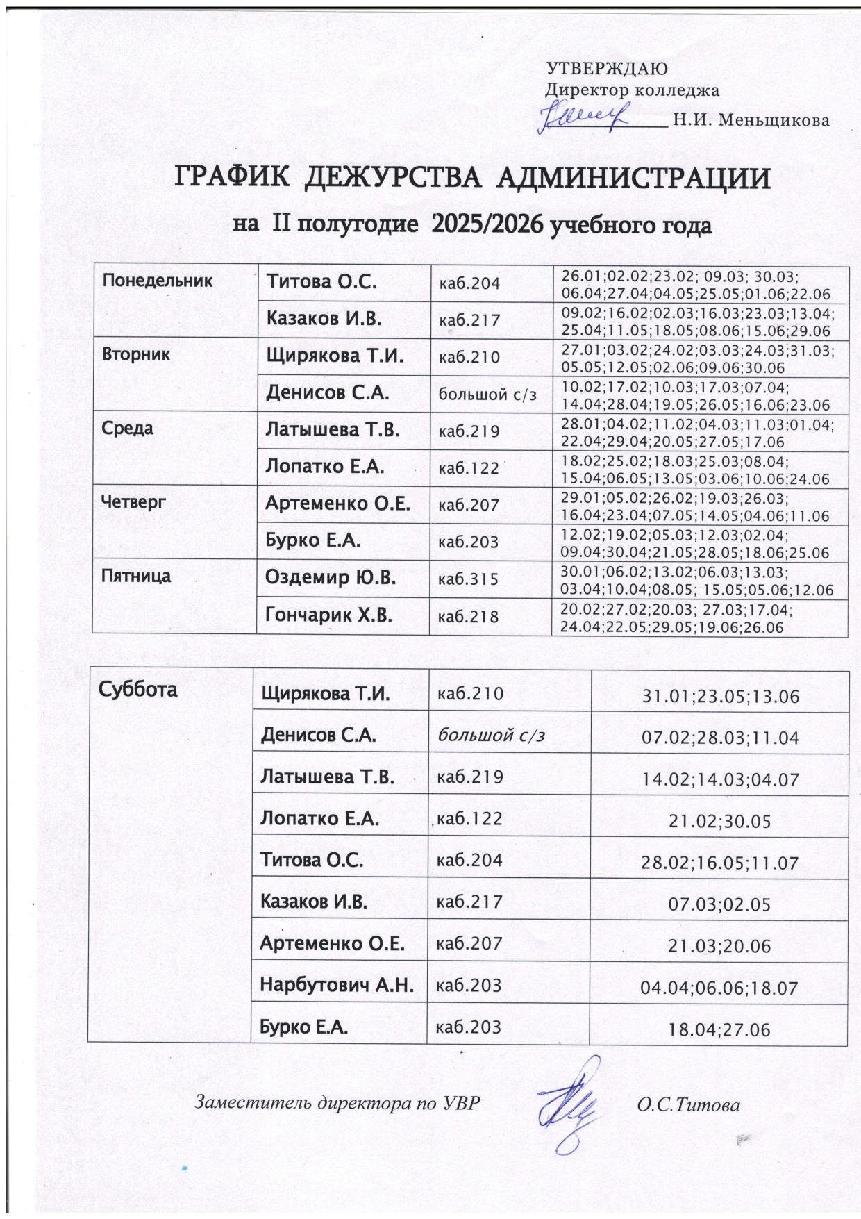 График дежурства администрации