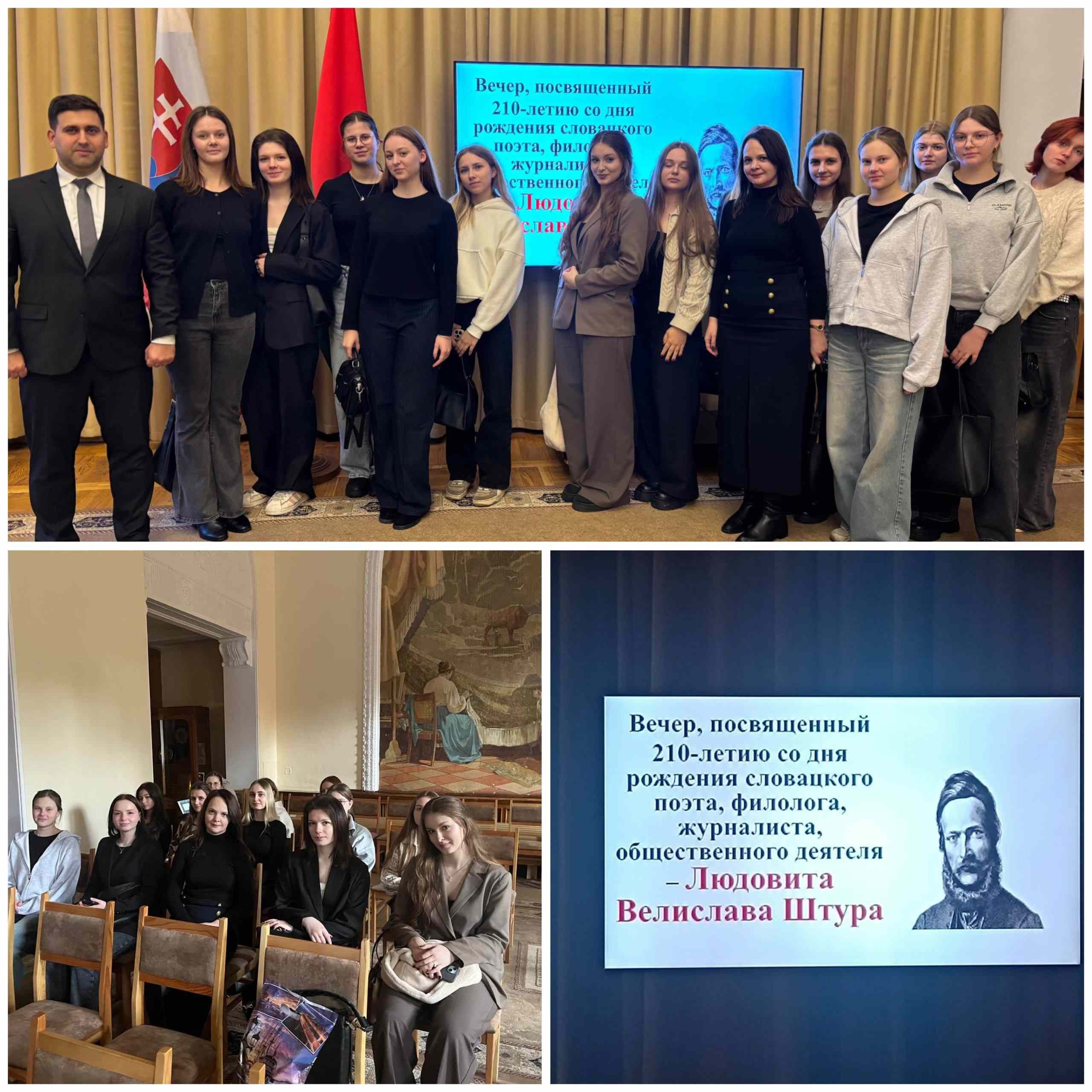 🤩Учащиеся 32 СБ учебной группы с куратором И.А.Ленко посетили вечер, посвященный 210-летию со Дня рождения словацкого поэта, филолога, общественного деятеля Людовита Штура.