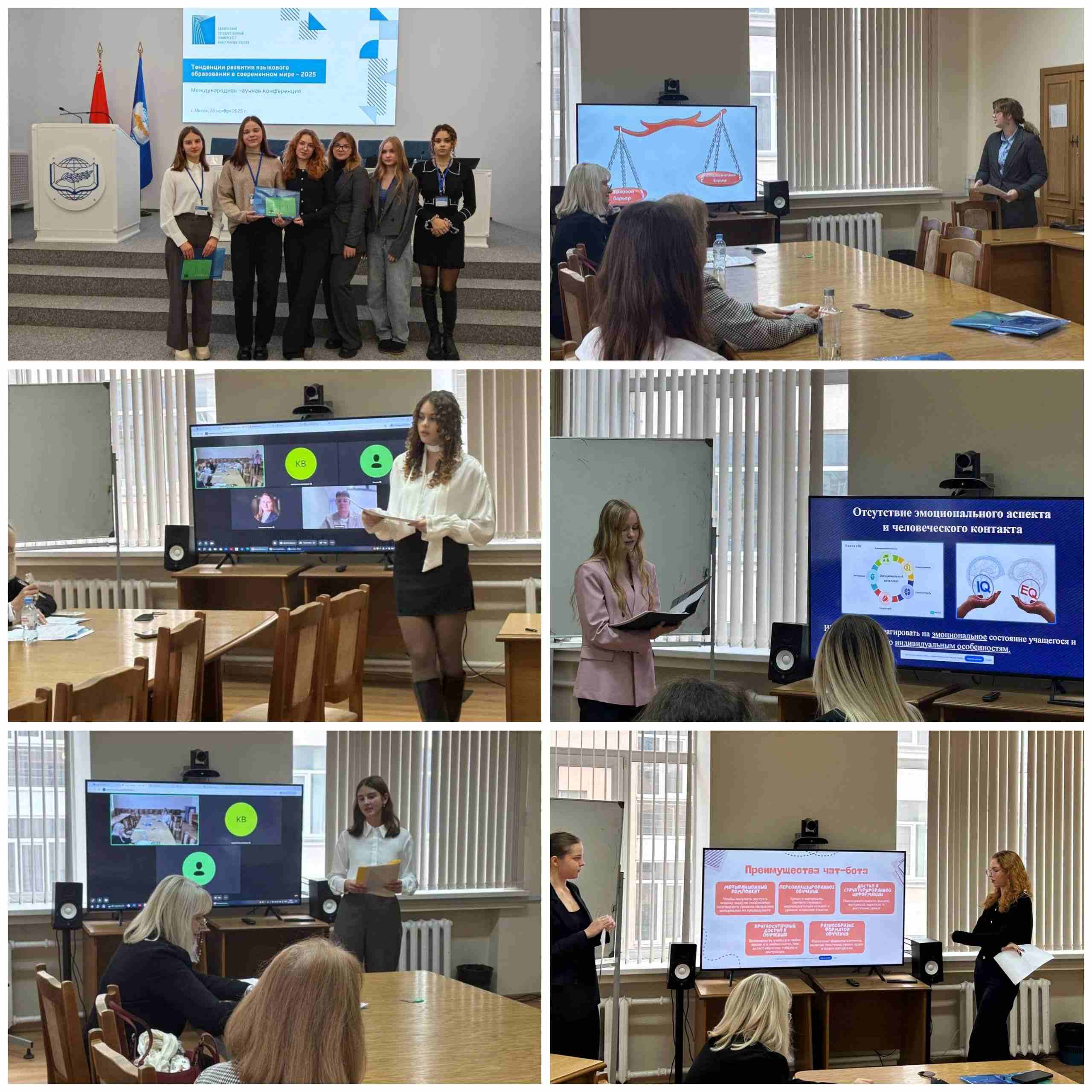 - руководитель Окотчик И.В., Царук Полина 31 ИБ (Соболь Т.А.), Маскаленко Дарья 43 ИБ, Немирская Мария, Гулякевич Анастасия 43 ИБ (Полищук И.В.) приняли участие в работе Международной научной конференции «Тенденции развития языкового образования в современном мире - 2025».