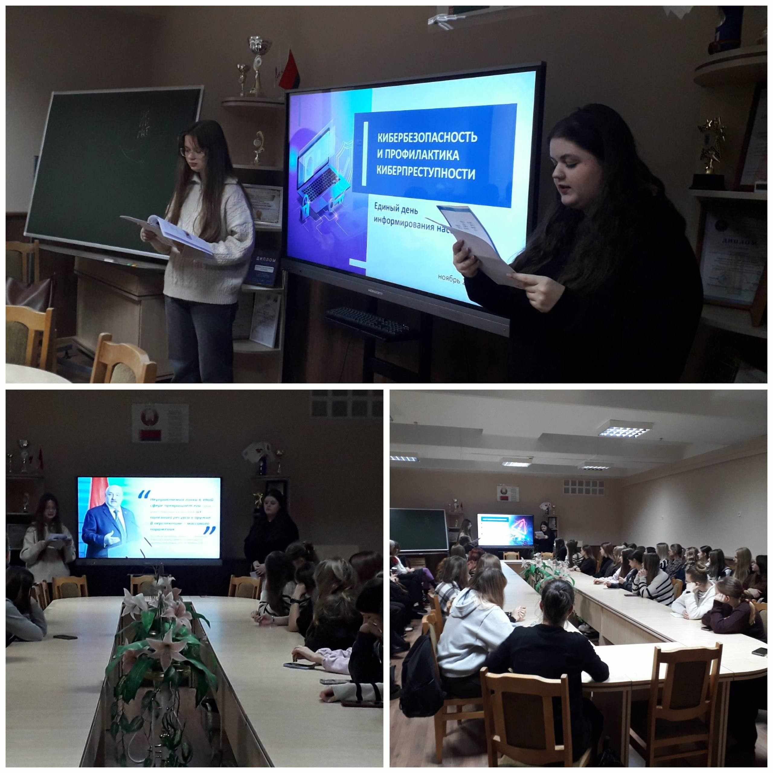 🤝🏼Учащиеся 24ИП группы Юхнович Диана и Курс Александра в рамках мероприятия ШАГ среди учащихся 11ИБ, 12ИБ, 13ИБ, 21СБ и 23СБ провели информационный час на тему: "Кибербезопасность и профилактика киберпреступности"