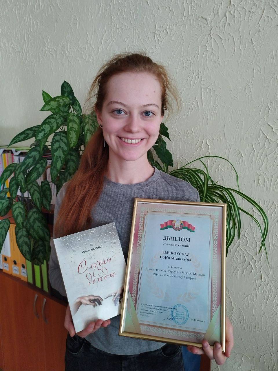 😍✨Навучэнка 31 ЗБ групы Лычкоўская Соф’я Міхайлаўна прыняла ўдзел у паэтычным конкурсе імя Міколы Маляўкі сярод маладых паэтаў Беларуі, які праводзіўся Мінскім гарадскім аддзяленнем ГА “Саюз пісьменнікаў Беларўсі”.