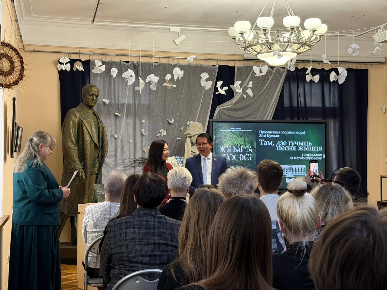 📖🎤Гостям вечера презентовали уникальное издание, а в атмосферу купаловского слова погрузили проникновенные чтения стихов на двух языках. Особую значимость событию придало присутствие представителей Министерства культуры и деятелей искусства.